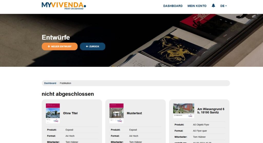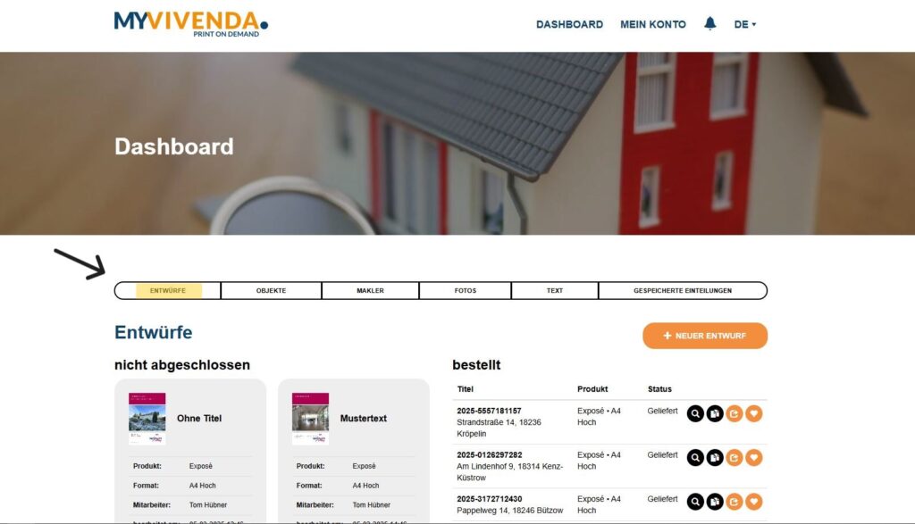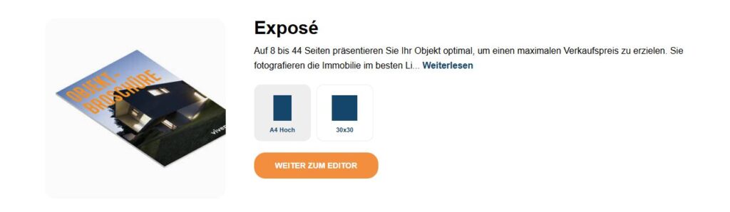 • Am einfachsten ist die Erstellung, wenn du ein vorhandenes, gedrucktes Vivenda-Exposé als Vorlage nutzt.