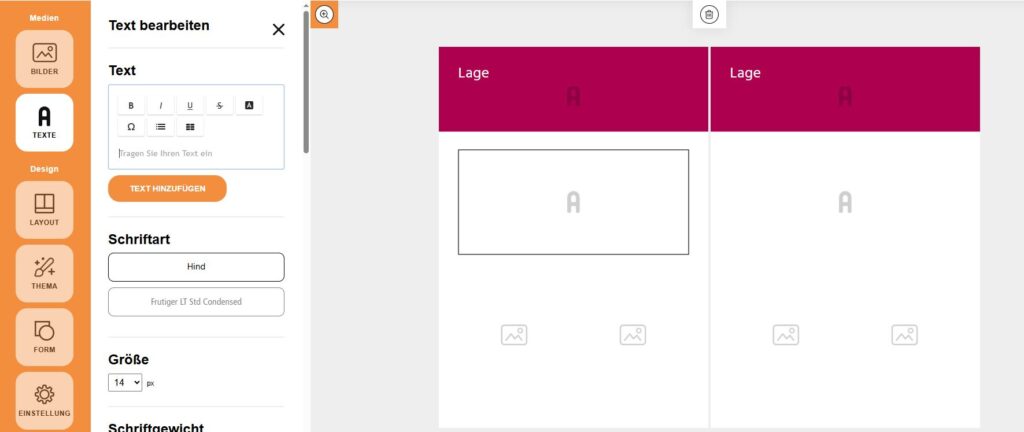 • Links findest du Felder für Bilder, Texte, Layout und mehr.