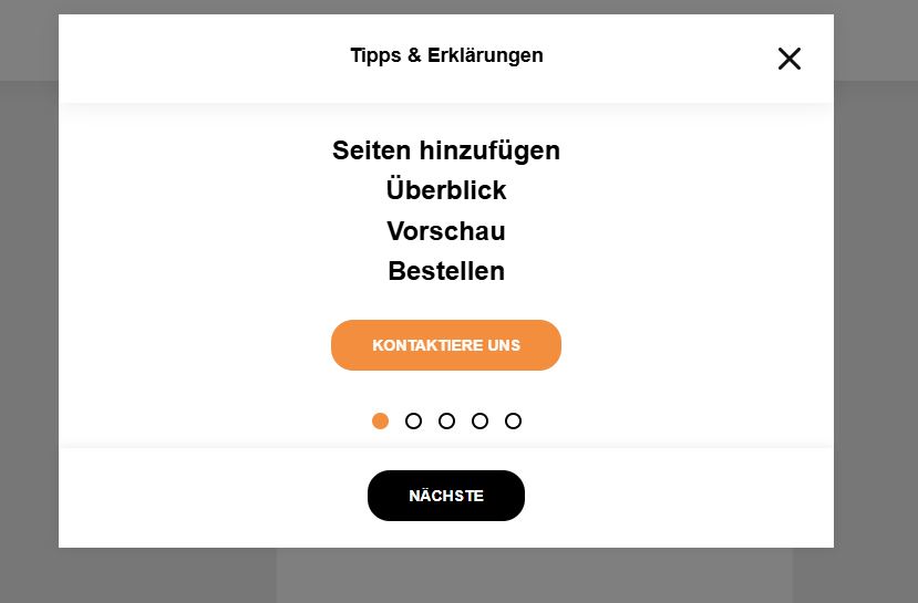 • Klicke im Menü auf „Entwürfe“. Hier findest du alle bisherigen, aber nicht bestellten Entwürfe.