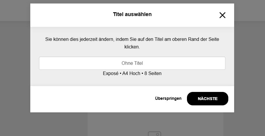 • Wähle auf der nächsten Seite aus, was du erstellen möchtest (z.B. Broschüren, Flyer, Exposés usw.).